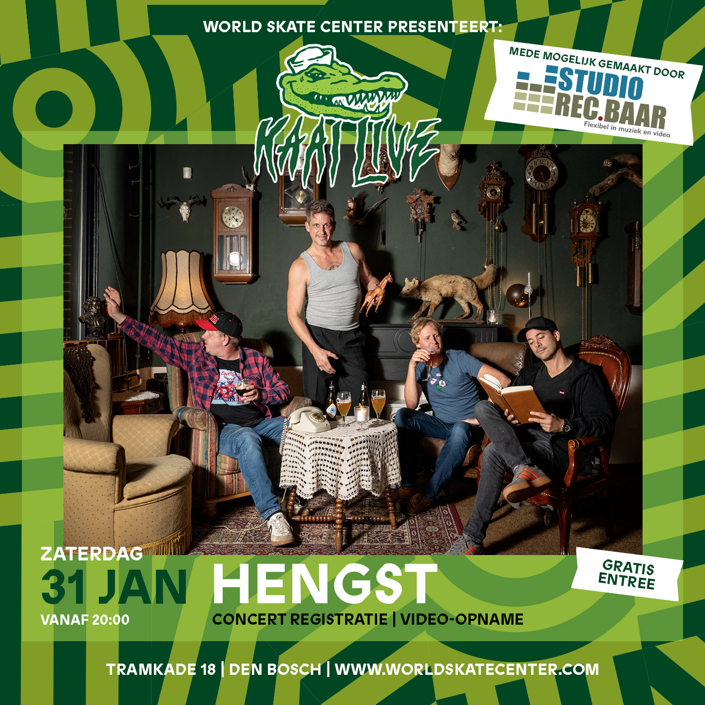 HENGST is een Nederlandstalige punkrockband uit de omgeving van Den Bosch. Ontstaan als een succesvolle Iggy Pop & The Stooges-tributeband, vanaf 2010 onder de naam HENGST eigen werk gaan maken. Nederlandstalige muziek, maar dan goed. Met shows in onder andere Effenaar, 013 en W2 kregen ze regionale bekendheid. Na een pauze van 10 jaar kwam... Lees meer Kaai Live: HENGST